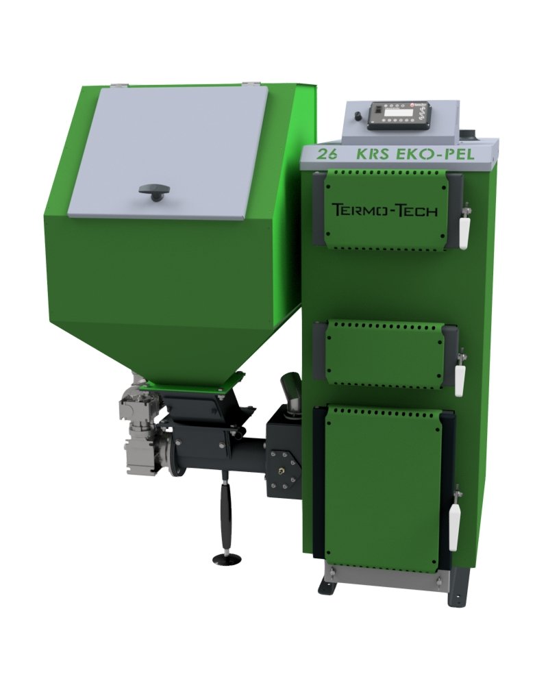 Termo-Tech KRS EKO-PELL 26 kW to nowoczesny, automatyczny kocioł na ekogroszek lub pellet drzewny, przeznaczony do ogrzewania domów jednorodzinnych, mieszkań oraz niewielkich obiektów użytkowych. Wyposażony w intuicyjny sterownik, zapewnia wysoką efektywność spalania, komfort użytkowania i spełnia najbardziej rygorystyczne normy ekologiczne.